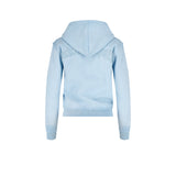 Washed & distressed baby blue zip hoodie with distressed logo embroidery on the back.