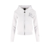Washed & distressed white zip hoodie with distressed logo embroidery on the back