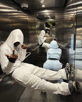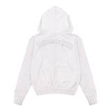 Washed & distressed pink white hoodie with distressed logo embroidery on the back