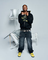 Washed jeans with iconic embroidery on the back.